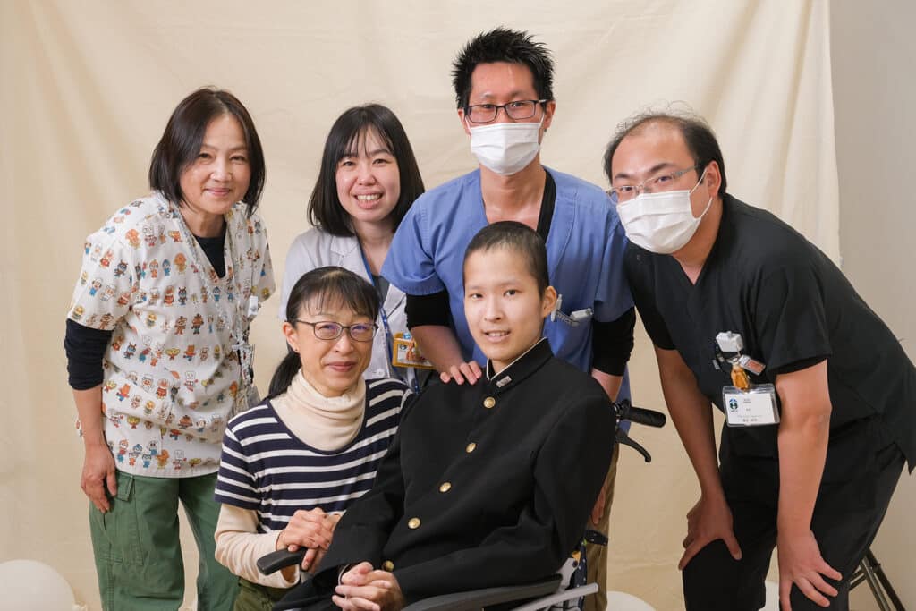 初めて会った時と同じように、最初は少し恥ずかしそうでしたが、ご家族や主治医の先生方と一緒に撮影する時には、満面の笑顔を見せてくれました。