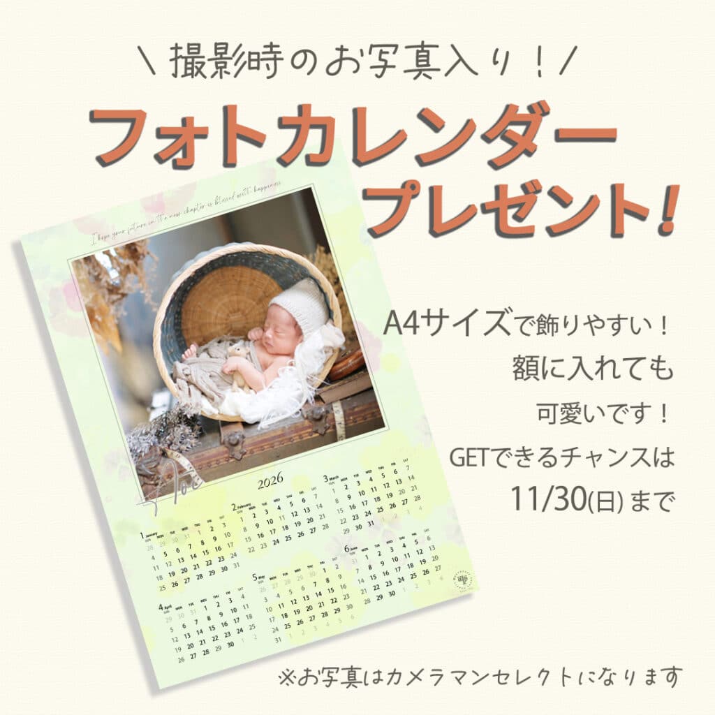 10月・11月中にベビーフォトをお考えの方にA4サイズのフォトカレンダープレゼント‼️