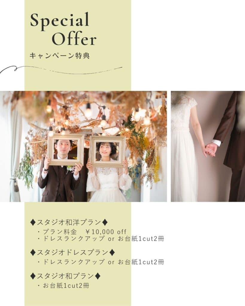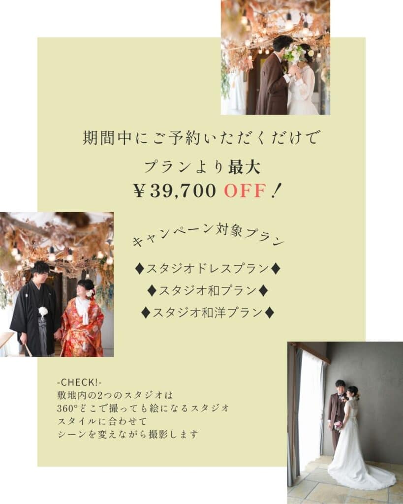 スタジオフォトウェディングの3プランが対象のキャンペーンです✨
