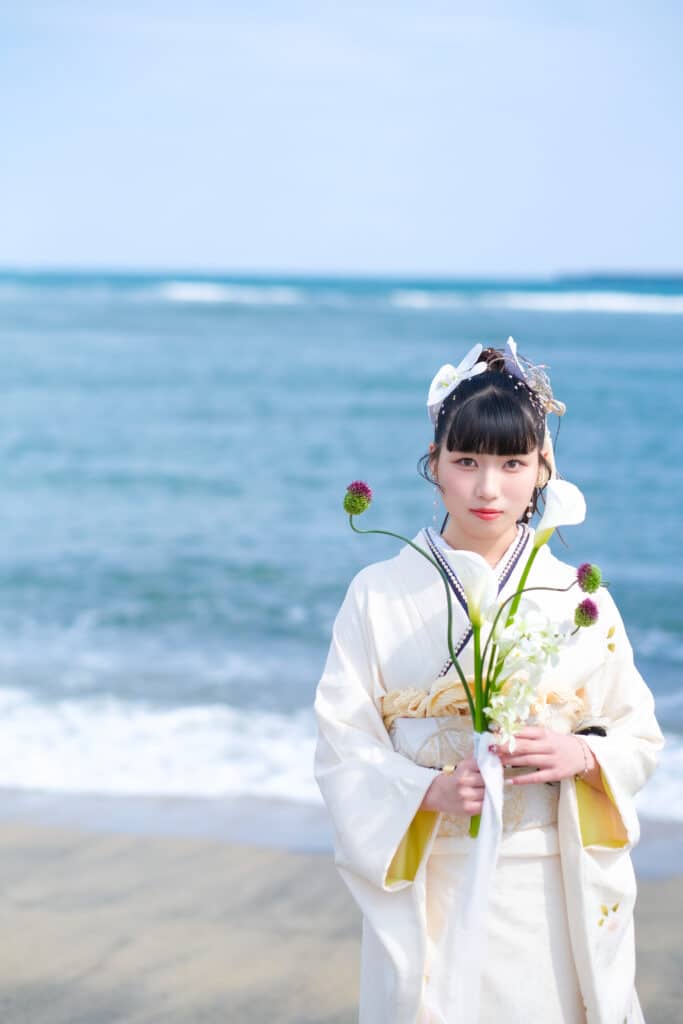 ワタナベフォトスタジオでは、熟練のスタイリストが一人ひとりの骨格や肌色に合わせてアドバイス。ただ映えるのではなく「伝統と私らしさ」を最大限に引き出す一着を一緒に探しだします。
