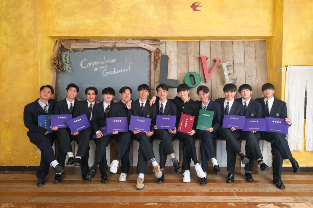 一緒に勉強をがんばったクラスメイトと制服で